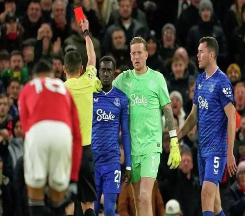 下半场,阿莫林连续换上芒特、达洛特和梅努三人加强进攻。虽然曼联在场面上一度形成压制对手的局面,无奈英格兰国门皮克福德屡献神扑,最终埃弗顿在长时间10人作战的情况下在客场1-0击败曼联。他们也成为首支10人作战在英超客场击败曼联的球队。而在输掉这场比赛中之后,曼联已经连续3轮不胜,仍积18分排名英超第10位。 赛后,英国媒体为曼联球员的评分如下(6分为大致平均水平): 门将:拉门斯5分 – 对失球负有一定责任,本应做出更好的扑救反应。 中卫:莱尼·约罗3分 – 在防守霍尔时显得犹豫不决,未能果断阻止霍尔射门。
